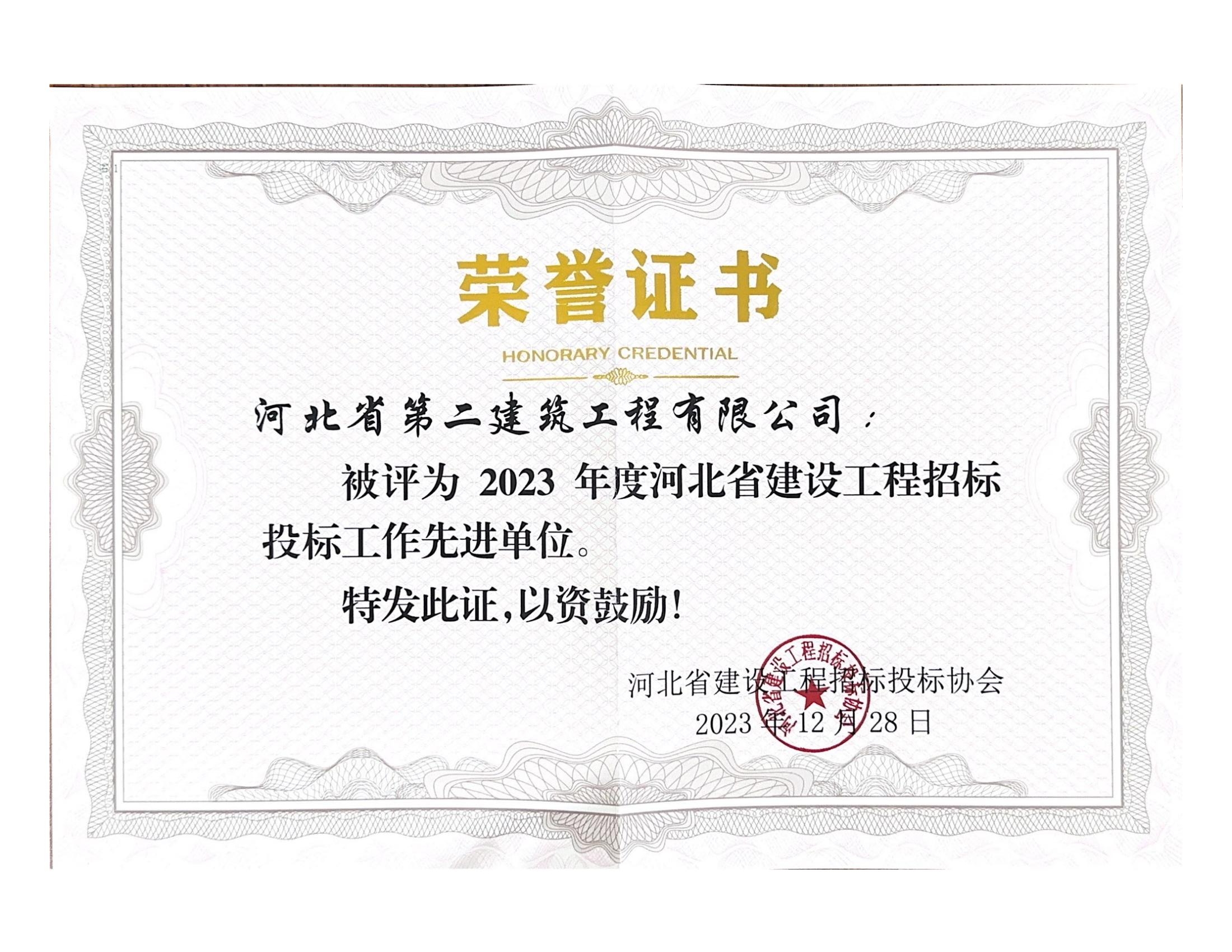 公司榮獲2023年度河北省建設工程招標投標工作先進(jìn)單位