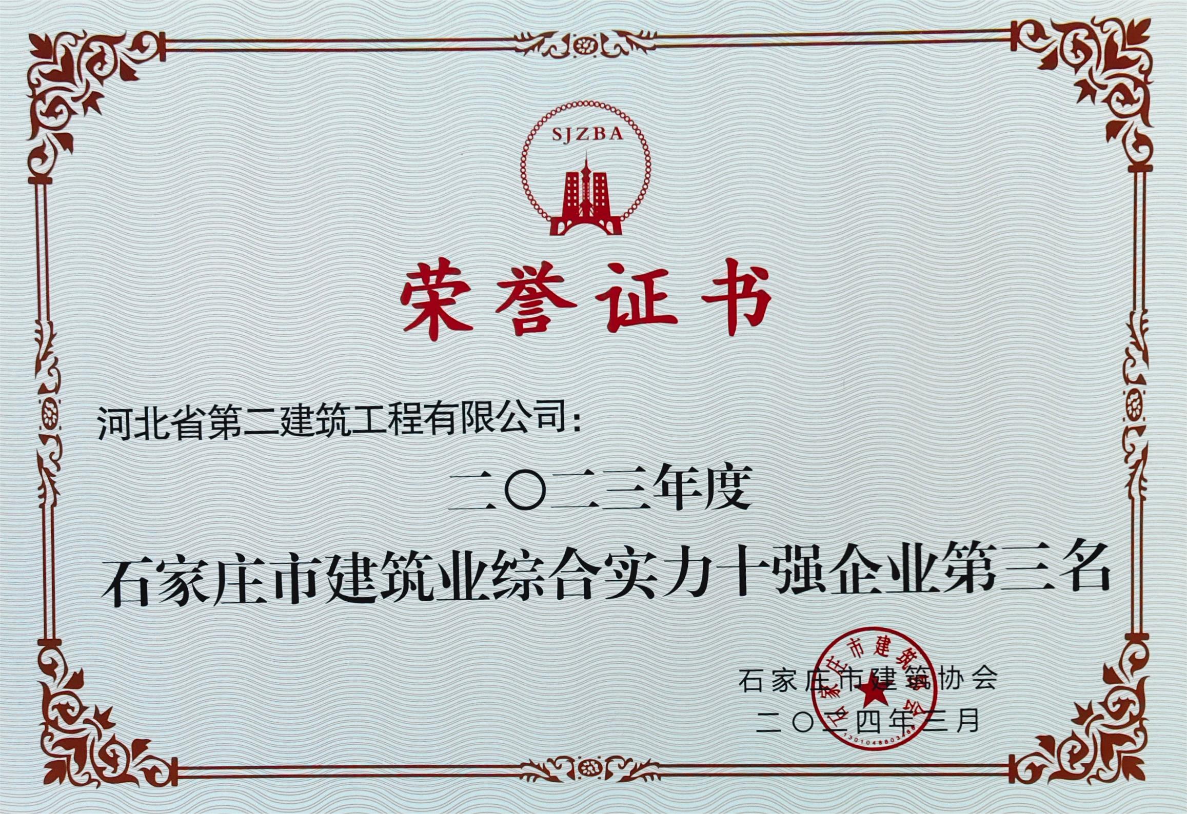 2023年度石家莊市建筑業(yè)綜合實(shí)力十強企業(yè)第三名