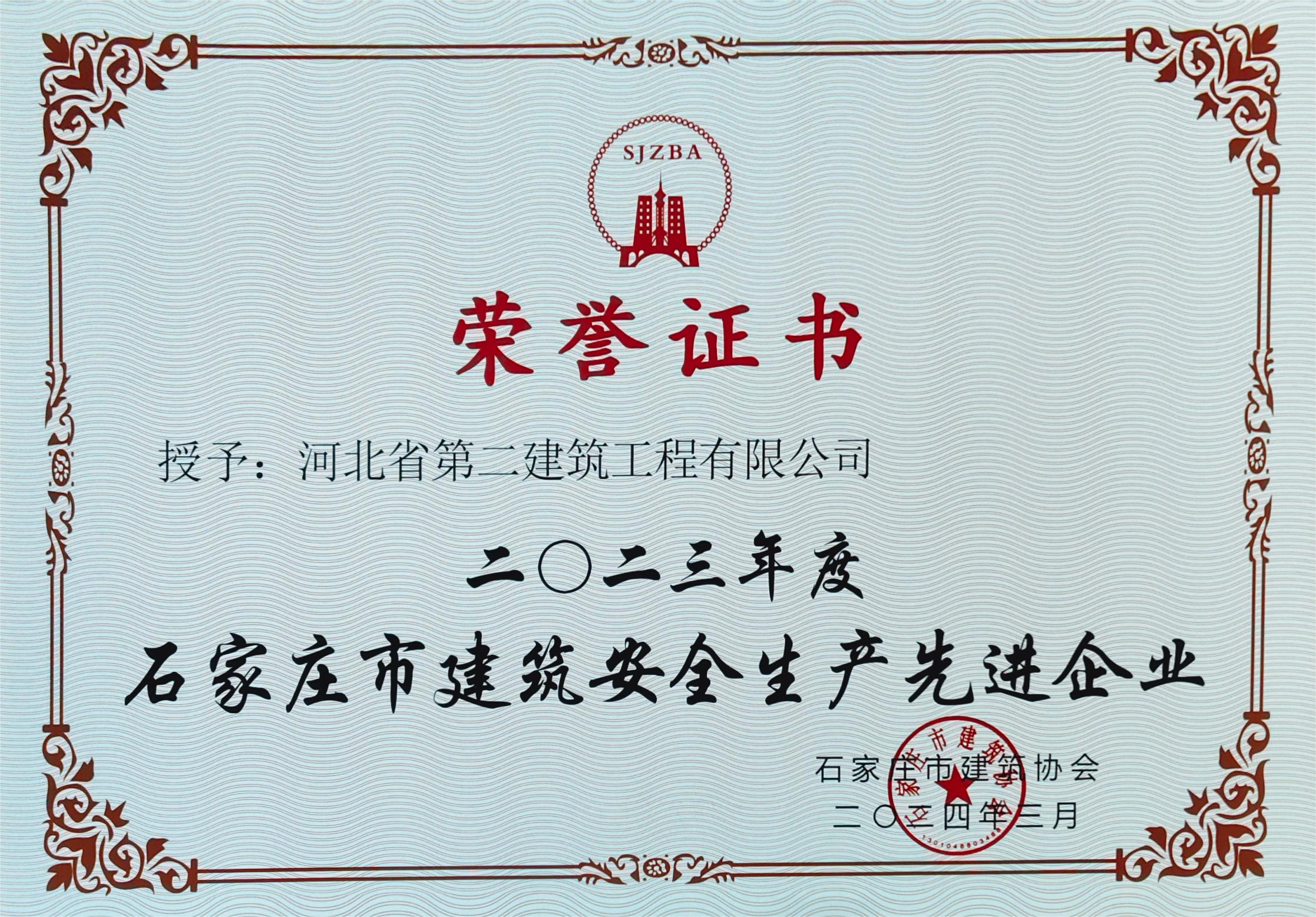 2023年度石家莊市建筑安全生產(chǎn)先進(jìn)企業(yè)