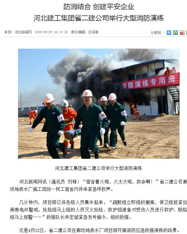 河北新聞網(wǎng)等多家媒體報道我消防實(shí)戰演練