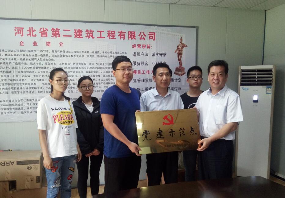 在集團領(lǐng)導、公司領(lǐng)導和項目部全體職工的見(jiàn)證下,集團黨委副書(shū)記張慶虎授予該項目黨建示范點(diǎn)匾牌。