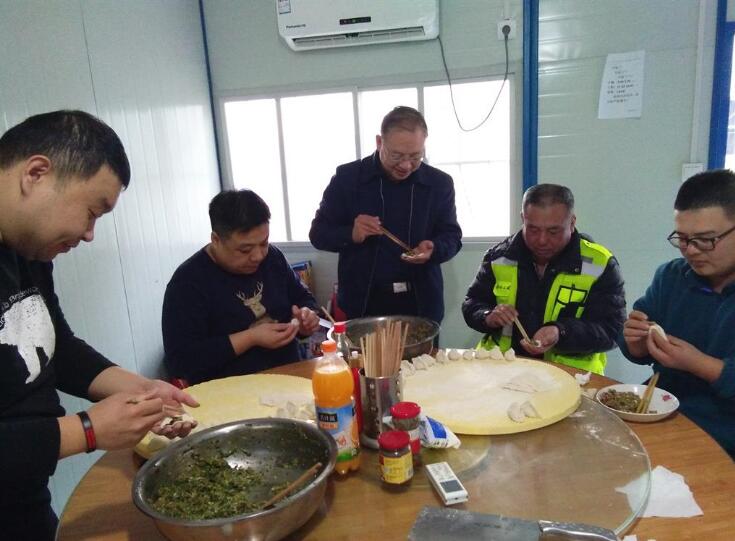 下午,農民工放假半天。管理人員在施工現場(chǎng)一切安排妥當,項目部堅守崗位的16名職工開(kāi)始布置“小家”,準備年貨。大家兩人一組、三人一隊,你追我趕,有掛燈籠的,有裝飾小院的,有布置辦公室的,有包餃子的,有條不紊的忙活著(zhù)。