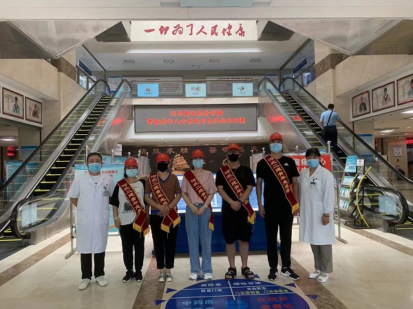 在門(mén)診大門(mén)口,部分志愿者幫助不會(huì )掃描場(chǎng)所碼的老人掃碼,協(xié)助老人用老年機刷身份證進(jìn)入。在門(mén)診大廳內,有的志愿者為老人指路,有的志愿者攙扶行動(dòng)不便的老人辦理業(yè)務(wù),有的志愿者在掛號機旁協(xié)助老年人掛號、打印化驗單等。