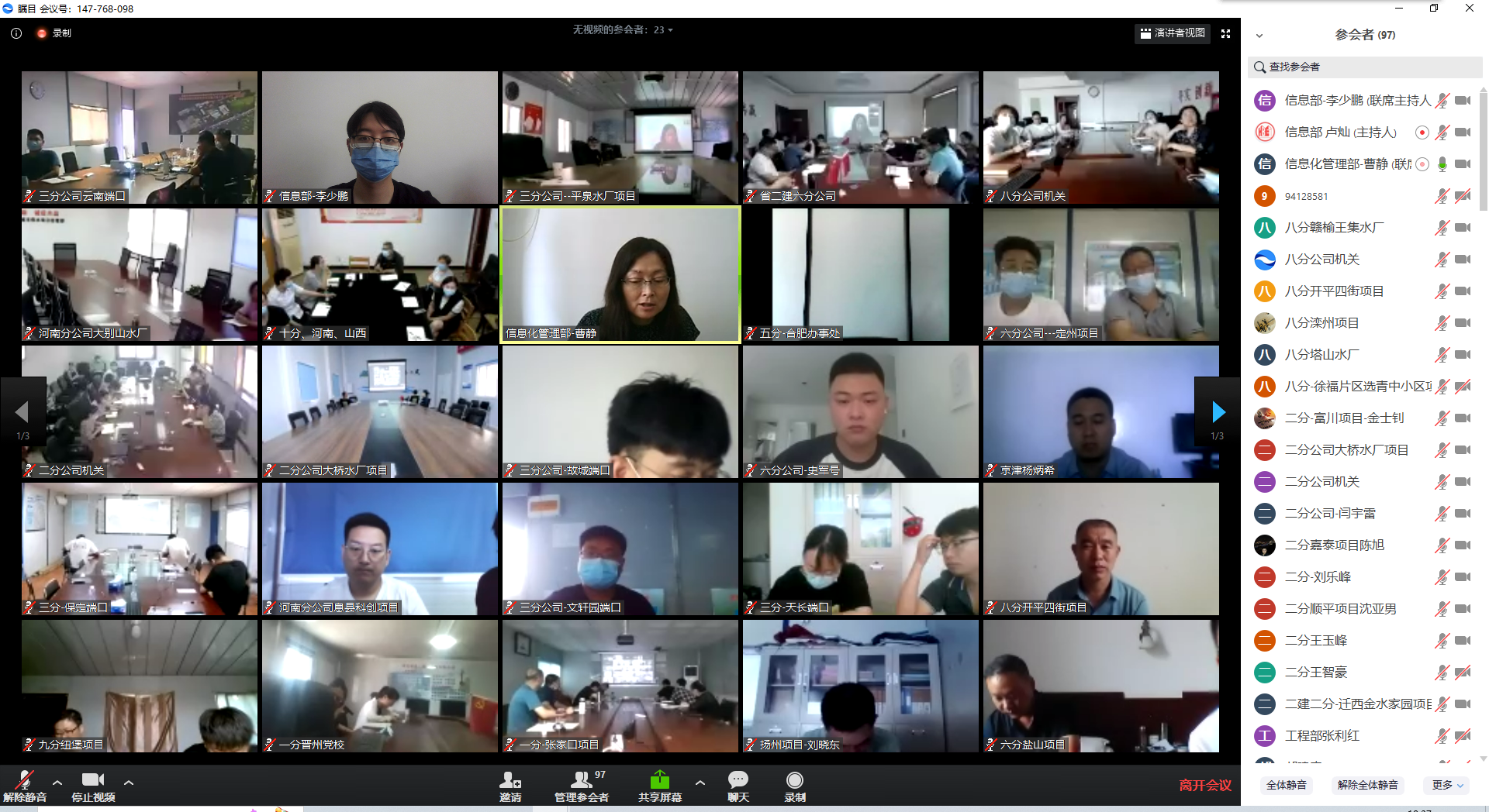 各單位對此次宣貫會(huì )高度關(guān)注,會(huì )議期間,100個(gè)矚目會(huì )議端口全部占滿(mǎn),各單位科室、項目部,部分分公司班子共計300余人參會(huì )。