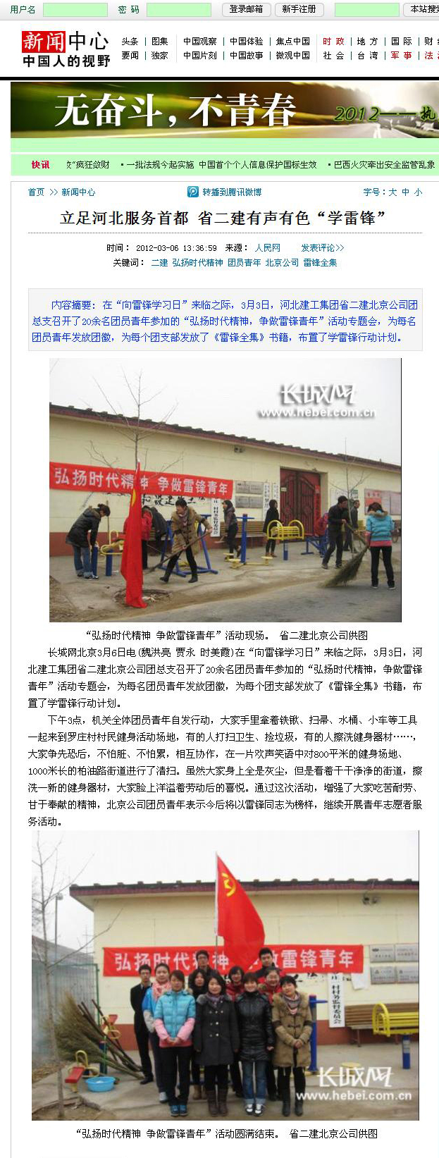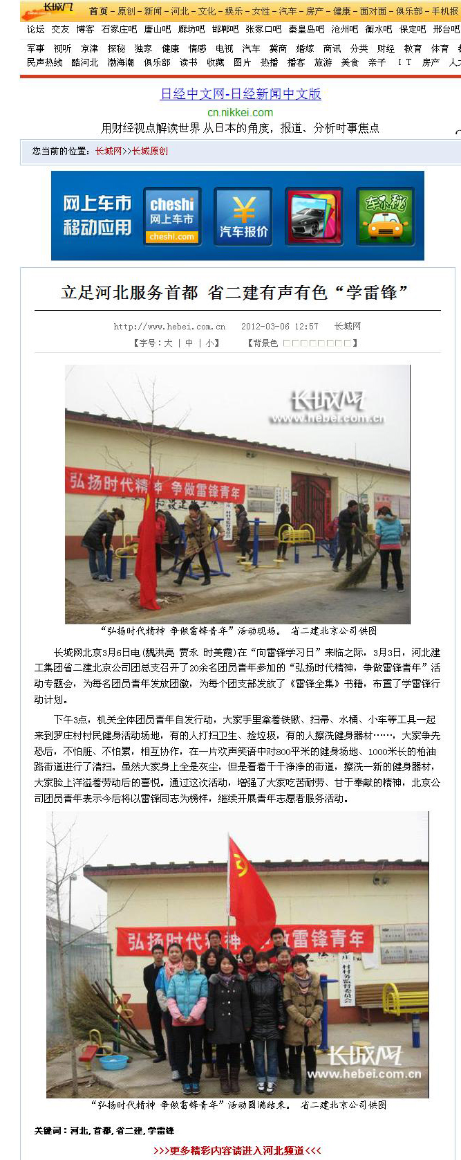 長(cháng)城網(wǎng)人民網(wǎng)等多家媒體報道我公司青年“學(xué)雷鋒”活動(dòng) 來(lái)源: 修改時(shí)間:2013.02.01 瀏覽:6103 長(cháng)城網(wǎng)等多家媒體 報道我公司青年“學(xué)雷鋒”活動(dòng) 2012年3月6日,長(cháng)城網(wǎng)以《立足河北服務(wù)首都 省二建有聲有色“學(xué)雷鋒”》為題圖文報道我公司青年“學(xué)雷鋒”活動(dòng)情況。隨后,人民網(wǎng)、中國網(wǎng)、中國日報網(wǎng)、網(wǎng)易網(wǎng)、21世紀新聞網(wǎng)等多家媒體轉載了這一報道。 上一條 返回列表 下一條