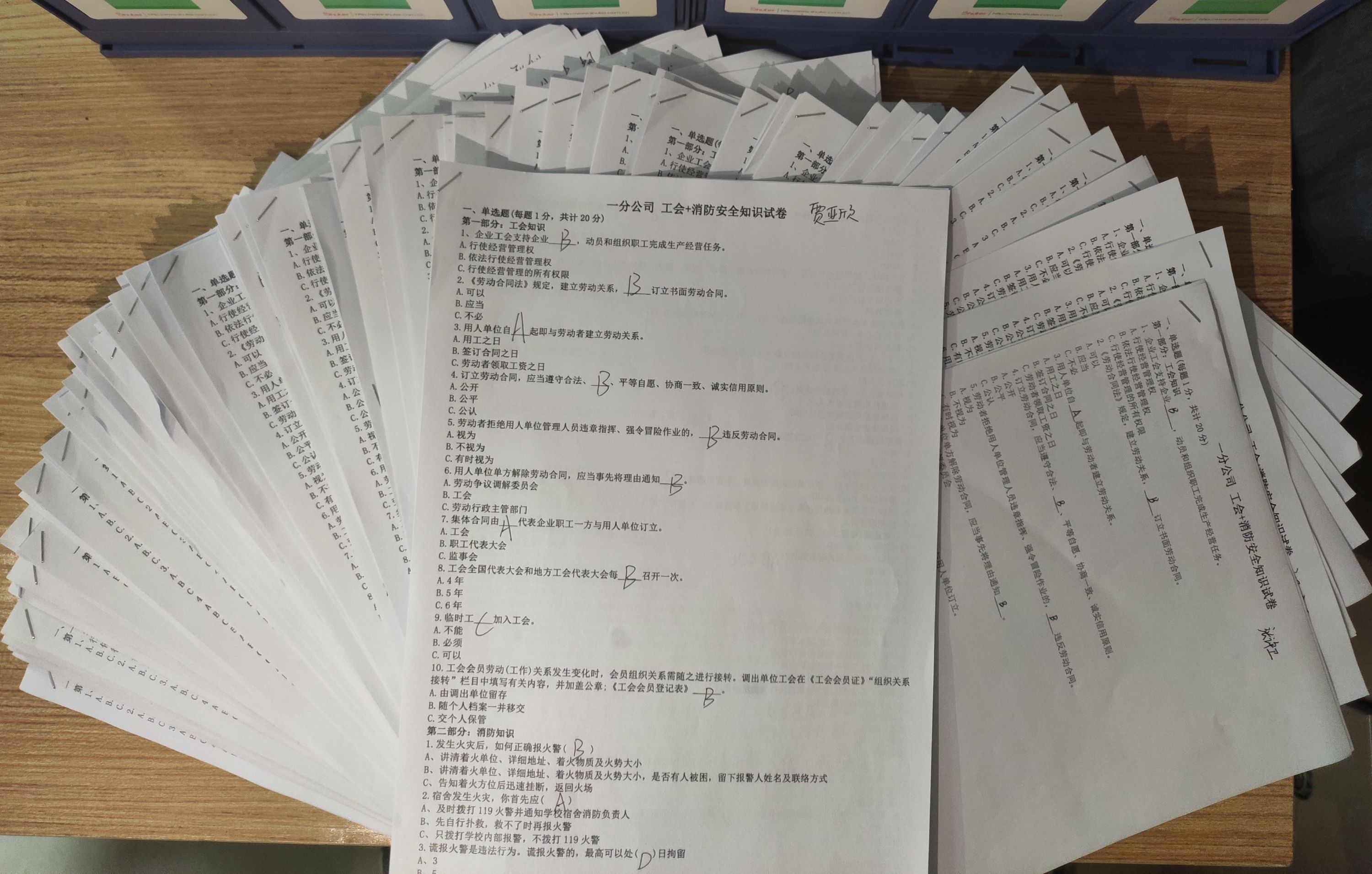 此次答題主要包含了工會(huì )互助保險知識、《勞動(dòng)法》《中國工會(huì )章程》,發(fā)生火災時(shí)如何正確報警、滅火器如何正確使用等與職工工作生活息息相關(guān)的內容,題型多樣化,知識覆蓋全面。答題以發(fā)放試卷形式進(jìn)行,廣大職工積極參與答題活動(dòng),截至到12日,共176人參與此次答題,覆蓋率達100%,在分公司營(yíng)造了濃厚的學(xué)習氛圍。