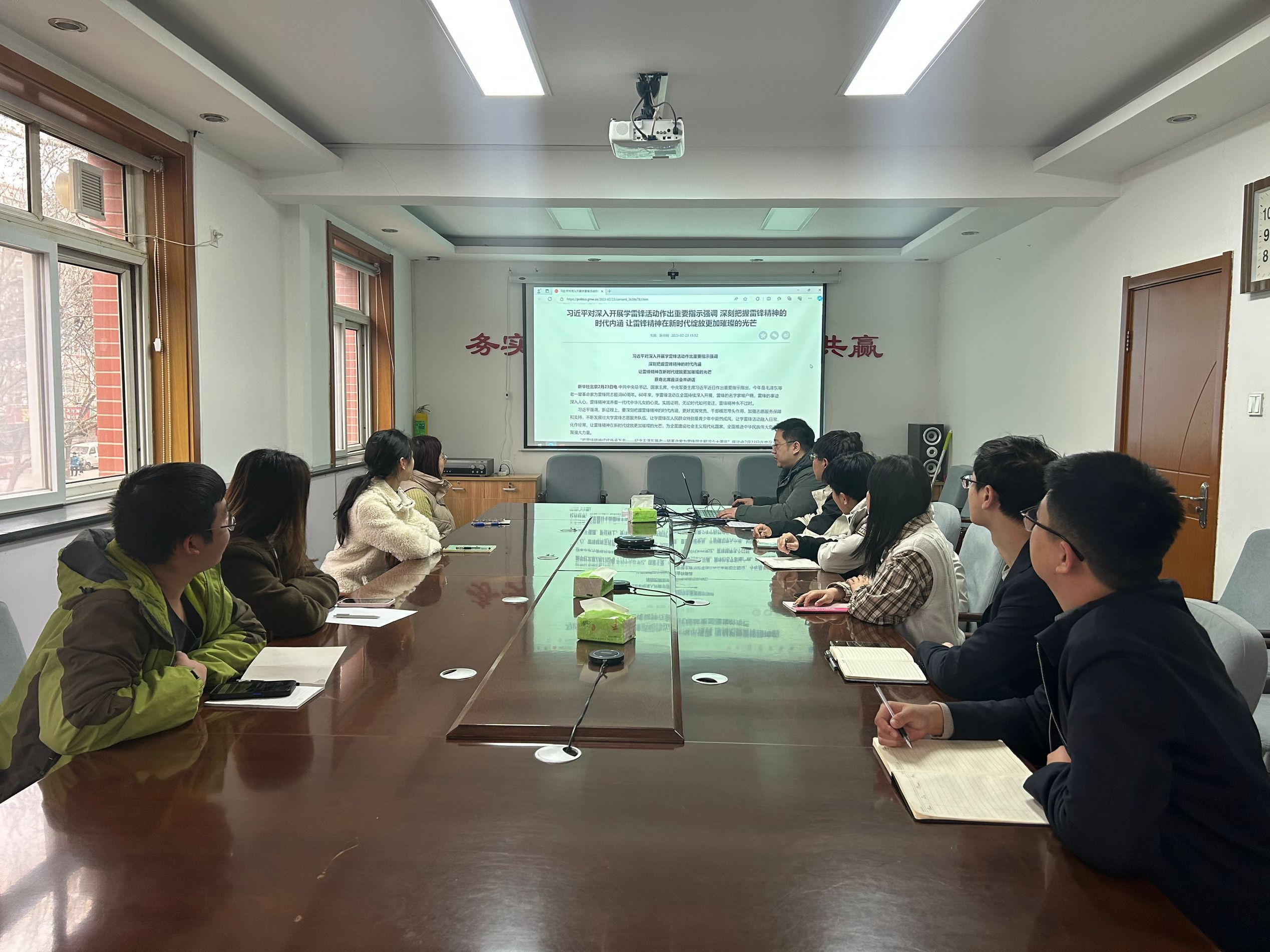 活動(dòng)中,團青職工在會(huì )議室共同學(xué)習了習近平總書(shū)記對深入開(kāi)展學(xué)雷鋒活動(dòng)作出的重要指示精神以及雷鋒同志的先進(jìn)感人事跡?;顒?dòng)要求團青職工從身邊事做起,從點(diǎn)滴小事做起,積極踐行社會(huì )主義核心價(jià)值觀(guān),倡議大家學(xué)習雷鋒同志銳意進(jìn)取、自強不息的創(chuàng )新精神;鼓勵大家將助人為樂(lè )、甘于奉獻的精神以及干一行、愛(ài)一行、鉆一行、精一行的敬業(yè)精神融入到日常生活和工作中,不斷提升個(gè)人文明修養和業(yè)務(wù)水平,以?xún)?yōu)異成績(jì)回報企業(yè)、貢獻社會(huì )。