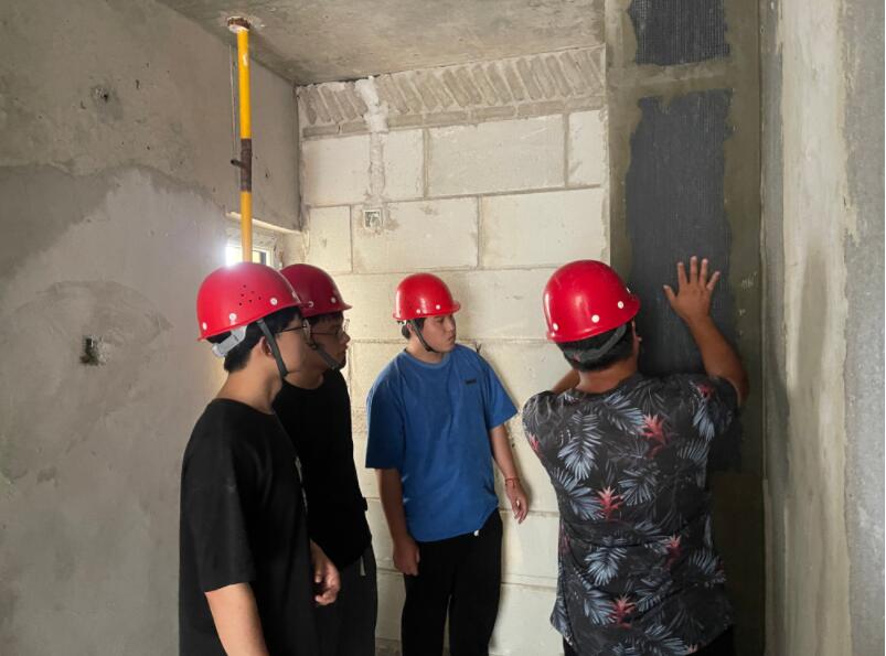 項目部在組織新職工開(kāi)展三級安全教育后,根據他們所學(xué)專(zhuān)業(yè),為每名職工安排一名經(jīng)驗豐富的老職工,負責帶領(lǐng)新職工走進(jìn)施工現場(chǎng),開(kāi)展為期一周的現場(chǎng)一對一專(zhuān)項指導。每天早上剛上班,就能看見(jiàn)他們手拿圖紙、圖集以及卷尺、靠尺等測量?jì)x器,扎入施工現場(chǎng)。