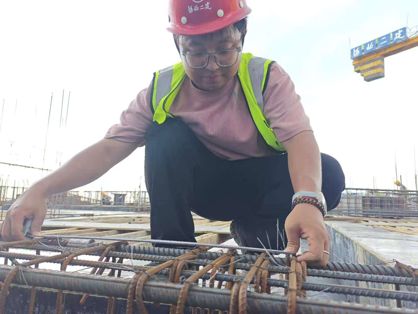 為了能夠更好地提升自己,他還加入了測量小組?;炷翝仓旰?個(gè)小時(shí)就要測設建筑物主軸線(xiàn),為了不影響進(jìn)度,有時(shí)凌晨三四點(diǎn),天還黑著(zhù),他們帶著(zhù)頭燈進(jìn)行測量;有時(shí)中午一兩點(diǎn),頂著(zhù)太陽(yáng),他們在燙手的頂板進(jìn)行測量。不管什么時(shí)間,只要需要他,他都會(huì )堅守在一線(xiàn),把任務(wù)高效、高質(zhì)量地完成。