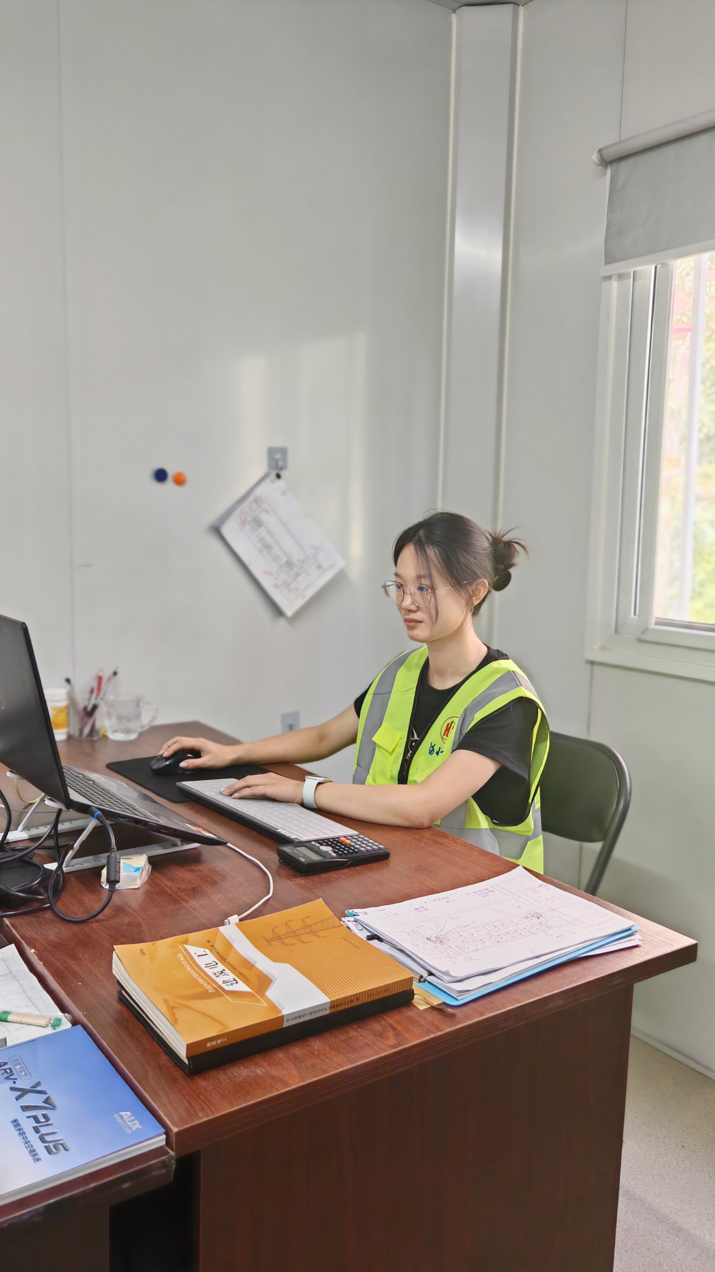 2022年7月,她被派往廊坊體訓館項目,初入項目的她感到知識儲備不足,書(shū)本上學(xué)到的理論知識遠遠不能滿(mǎn)足現場(chǎng)的工作實(shí)際。于是每天她都會(huì )拿著(zhù)看不明白的圖紙去現場(chǎng)對照,對照實(shí)際施工,一點(diǎn)點(diǎn)學(xué)習。對于不懂的業(yè)務(wù)知識總是認真地向各位前輩請教。在短短的兩個(gè)月的時(shí)間里,她的基礎業(yè)務(wù)工作能力得到了提升,也為日后的工作奠定了堅實(shí)的基礎。