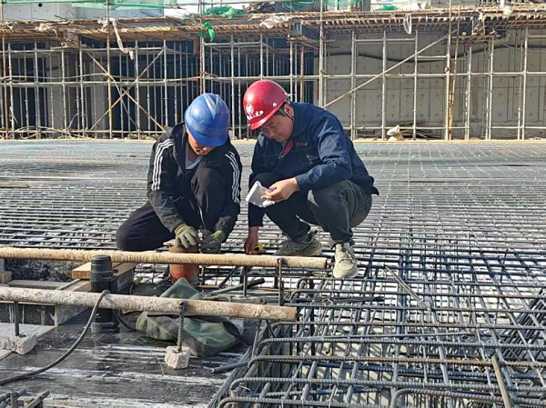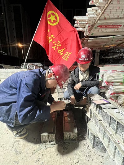 “青年突擊隊”作為項目攻堅克難的生力軍,沖鋒在精細化管理的前端。日常工作中,突擊隊成員們帶頭樹(shù)牢質(zhì)量意識,趙祎芃作為現場(chǎng)的材料員,不論夏日酷暑還是冬日嚴寒,他都堅守一線(xiàn),嚴格把控材料質(zhì)量,對所有進(jìn)場(chǎng)材料逐一進(jìn)行質(zhì)量驗收,并對現場(chǎng)實(shí)體質(zhì)量實(shí)施動(dòng)態(tài)監督,一旦察覺(jué)不符合質(zhì)量標準的操作,即刻責令整改,堅決杜絕任何質(zhì)量隱患留存。項目試驗員李子奧也在師父的帶領(lǐng)下及時(shí)、規范地對進(jìn)場(chǎng)材料進(jìn)行取樣送檢,保障材料質(zhì)量檢測環(huán)節的嚴謹性?!扒嗄晖粨絷牎币浴昂颖笔?yōu)質(zhì)工程”為創(chuàng )優(yōu)目標,按照提前制定的特殊作業(yè)的施工方案,強化施工過(guò)程中的質(zhì)量管控,以實(shí)際行動(dòng)全力確保各單位工程的分部分項工程一次驗收合格率100%。