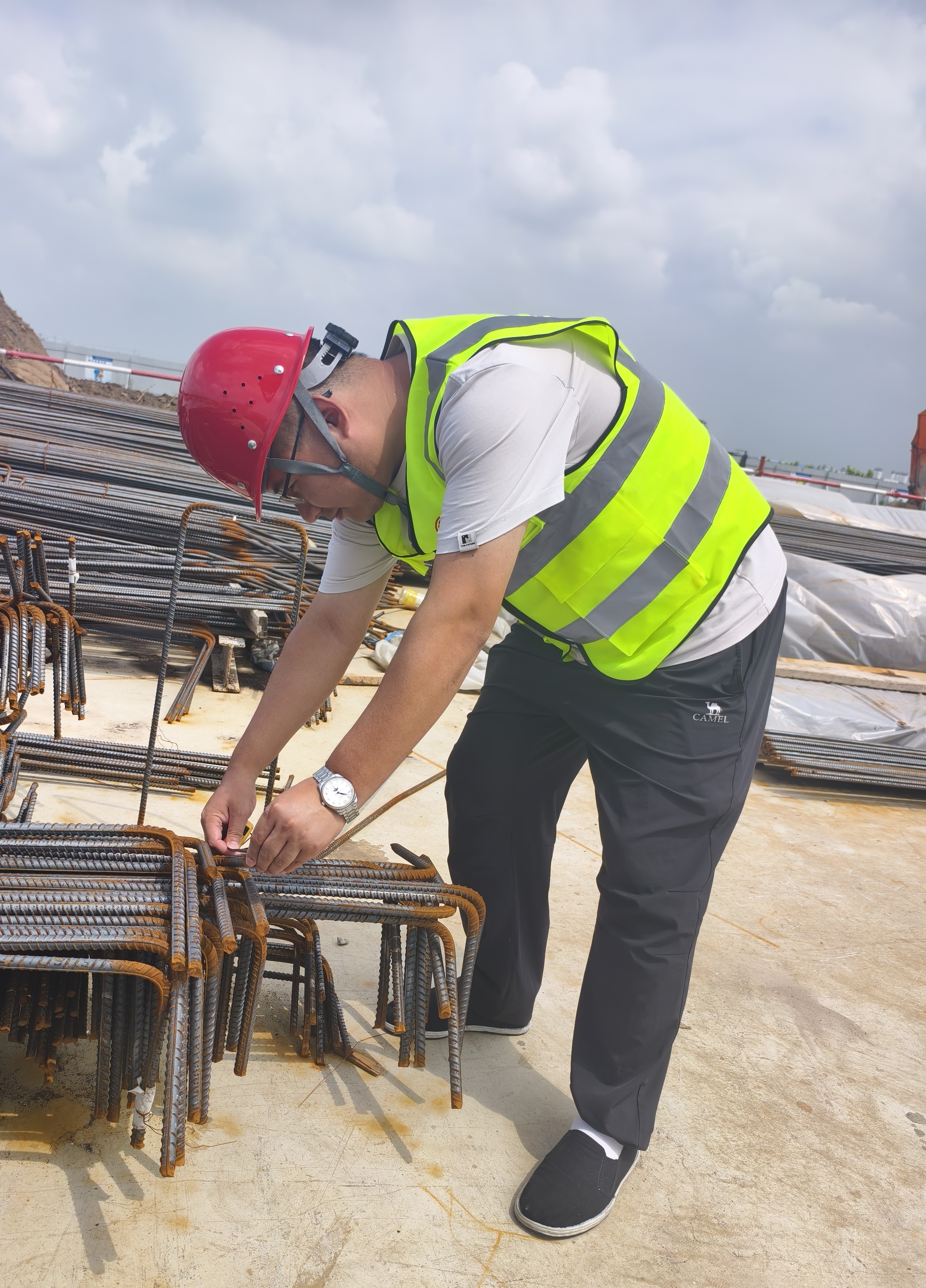 在項目樁基施工階段,由于現場(chǎng)施工人員較少,他又獨自承擔起樁基施工工作,樁基定位、成孔、鋼筋籠驗收、計算、澆筑、檢測……他馬不停蹄。為防止打樁時(shí)海水倒灌,他邊工作邊向有經(jīng)驗的老師傅請教、與當地地勘部門(mén)聯(lián)系商討處理辦法、在網(wǎng)上查閱樁基施工的注意事項。黎明拂曉、夜幕星辰,只見(jiàn)他身背儀器的身影,本以為他只是初入職場(chǎng)、稚氣未消的少年,不承想,他已成長(cháng)為風(fēng)華正茂的技術(shù)擔當。在工作之余,他還編寫(xiě)了《一種移動(dòng)式可調絕緣電纜支架》的實(shí)用新型專(zhuān)利。