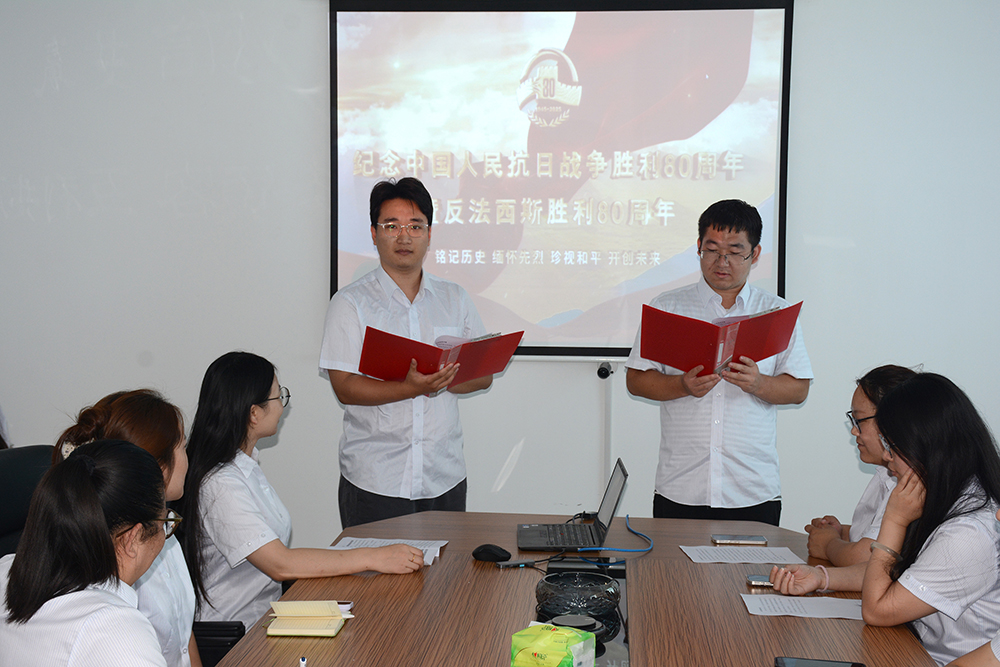 銘記歷史,勿忘國恥。下午兩點(diǎn)整,團員青年們齊聚會(huì )議室,開(kāi)展了“抗戰故事分享會(huì )”。各分公司分別選拔出優(yōu)秀選手,每人搜集一篇抗戰故事,聲情并茂地演講分享,以鏗鏘之聲致敬先烈,以青春視角詮釋時(shí)代擔當。