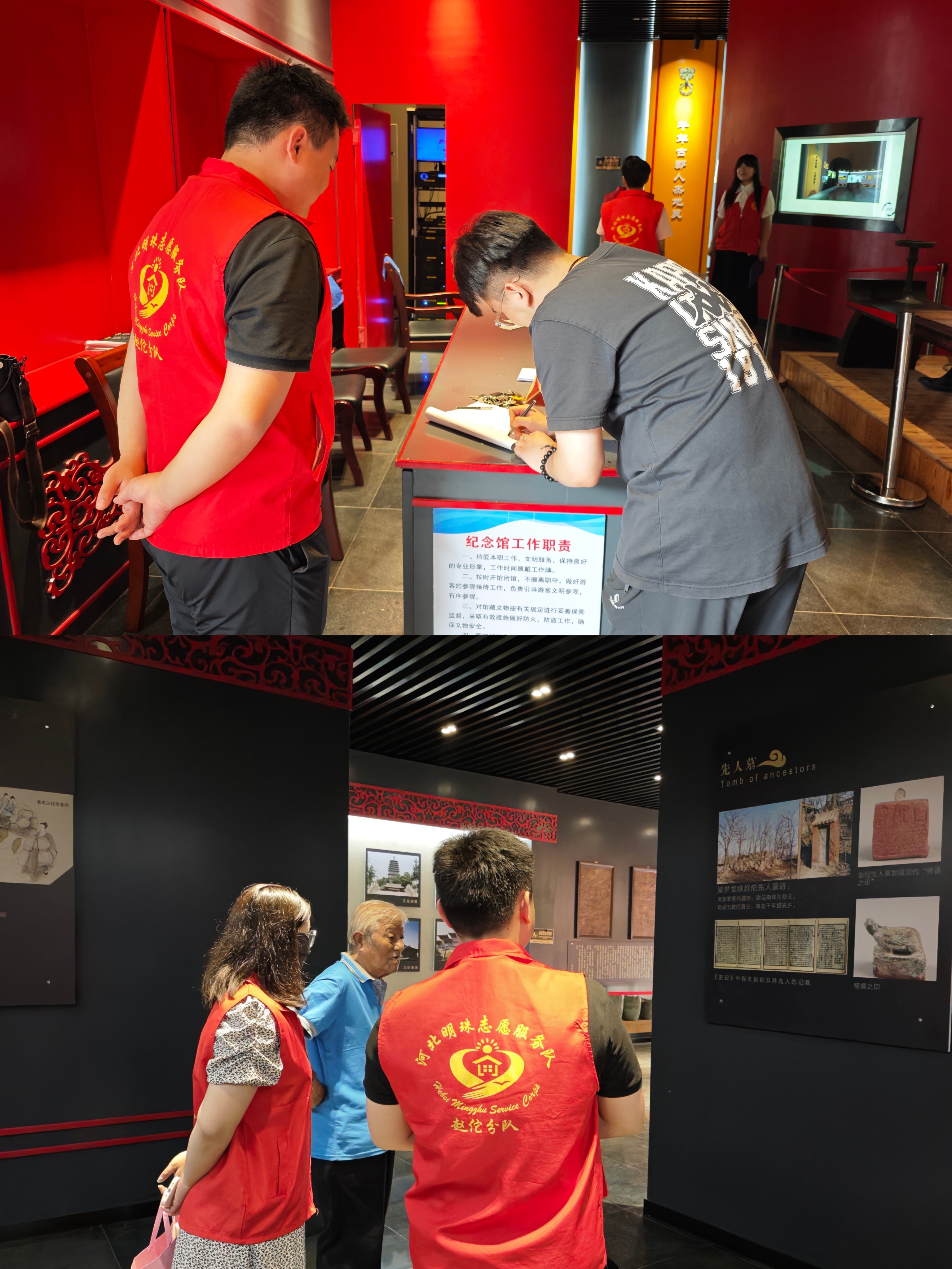 在紀念館中,志愿服務(wù)站任隊長(cháng)首先向志愿者們介紹了服務(wù)職責與注意事項,并帶領(lǐng)大家參觀(guān)展陳,講解趙佗的生平事跡,闡釋其在促進(jìn)民族團結、推動(dòng)中原文化傳播方面的重要作用。志愿者們認真聆聽(tīng)講解、學(xué)習歷史,從趙佗創(chuàng )立南越國,到“和輯百越”、推廣中原文化、促進(jìn)民族融合,他的人生軌跡成為志愿者們了解中華傳統文化與地域歷史的重要窗口。學(xué)習之后,志愿者們正式投入到服務(wù)環(huán)節:有人擔任公益講解員,向游客介紹展覽內容,傳播家鄉文化;有人維持現場(chǎng)秩序,引導游客文明參觀(guān);有人負責答疑解惑,耐心回應游客的問(wèn)題;最后,全體志愿者還對館區進(jìn)行了清潔整理。一系列具體而扎實(shí)的服務(wù),展現了青年志愿者的服務(wù)熱情與專(zhuān)業(yè)素養。